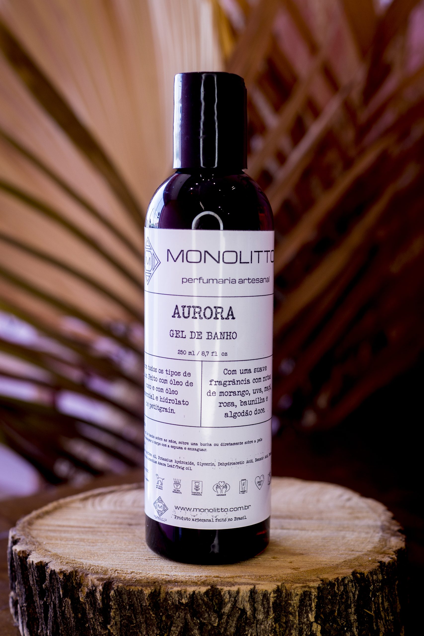 O Gel de banho – Aurora tem uma suave fragrância floral frutal. Com notas de morango, uva, maçã, rosa damascena, baunilha e algodão doce.