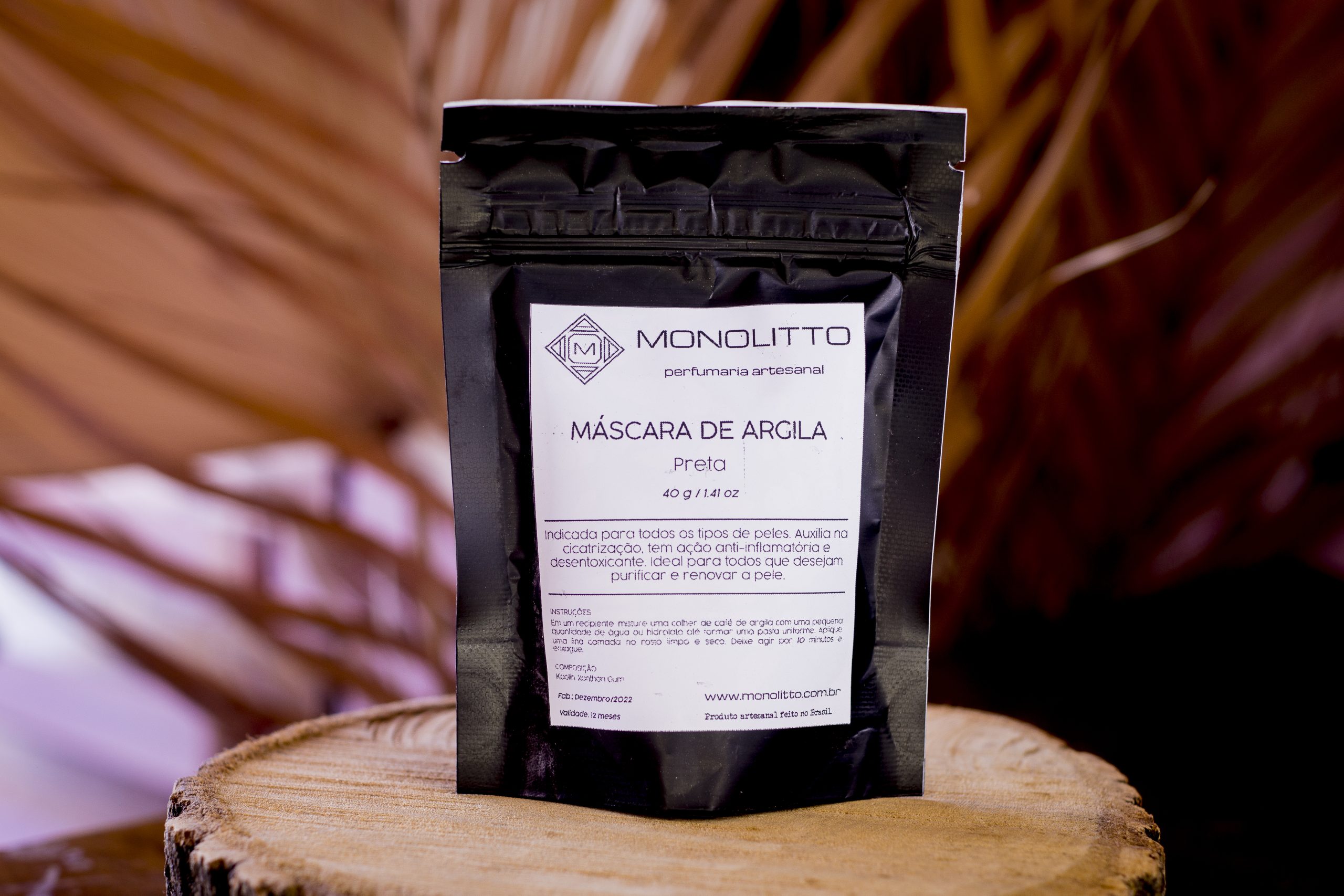 Instruções: Em um recipiente misture uma colher de café de argila com uma pequena quantidade de água ou hidrolato até formar uma pasta uniforme. Aplique uma fina camada no rosto limpo e seco. Deixe agir por 10 minutos e enxague.